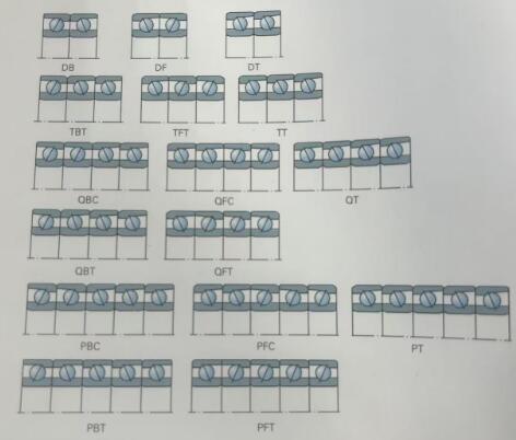 3、串聯(lián)配對(DT),兩個軸承以相同的方向排列,軸承接觸角方向一致,大幅度提升了配對軸承承受單向軸向載荷的能力,另外可以采用多軸承串聯(lián)的方式,定向提升承載性能。